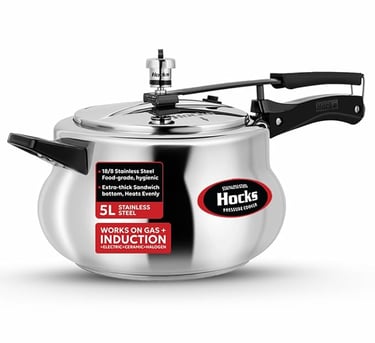 Hocks Handi Pressure Cooker has a unique body with rounded sides for easier stirring, better visibility and easy removal of food. For difficult dishes which require a lot of stirring, the Handi is the ideal cooker.