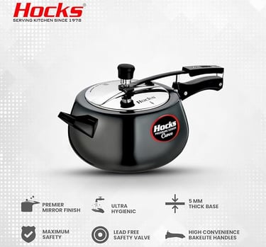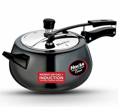 Hocks Black Curve Pressure Cooker is made from high quality Virgin Aluminium, this curve pressure cooker is fairly easy to wash and maintain. With a specially designed base, the pressure cooker is well suited for traditional method of cooking.