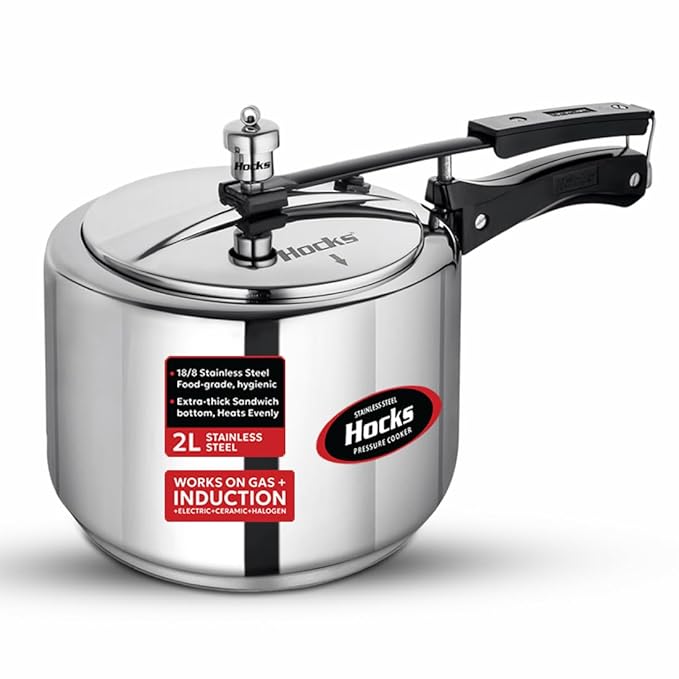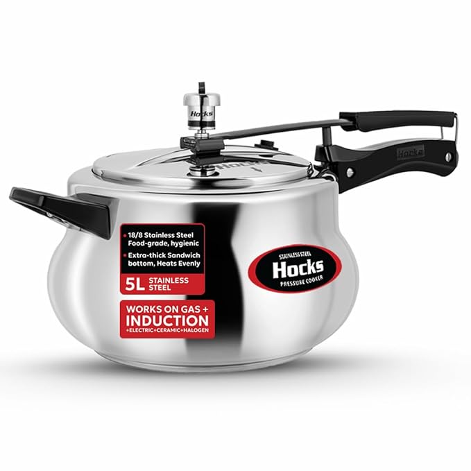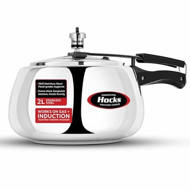 Hocks Curve Stainless Steel Pressure cooker features idol capacity and comes with bakelite handles for comfortable grip. Made from quality Stainless Steel, you can safely use this pressure cooker for your daily cooking needs.